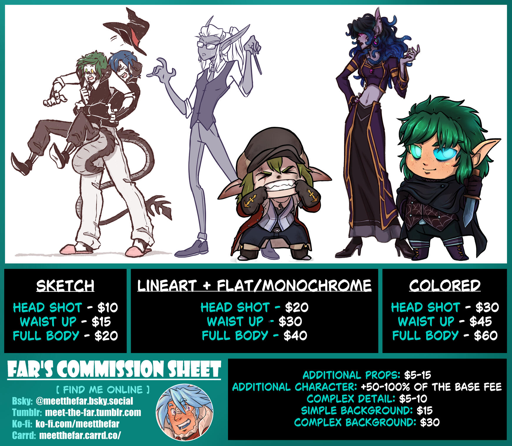 Hello and thank you for checking out my page! My name is Far and I'm a self-taught hobby artist with a passion for drawing fantasy and silly cartoons. My goal is to capture the personalities of people's characters the way they envision them, and sometimes in a way that makes them laugh too! Please check out my works in the gallery tab below.